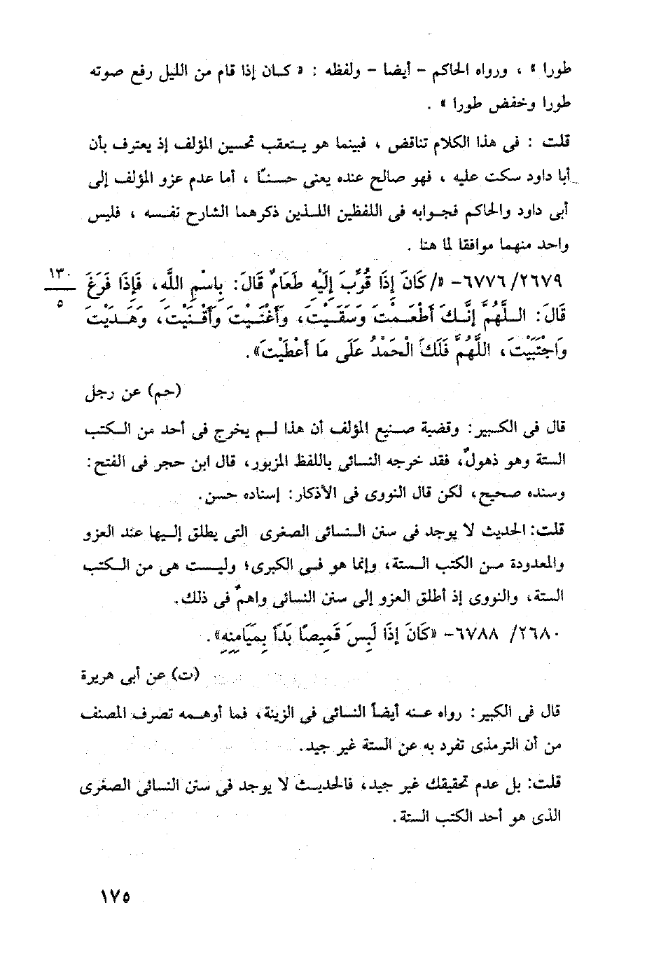 قال في الكبير: وقضية صنيع المؤلف أن هذا لم يخرج في أحد من الكتب الستة وهو ذهولٌ، فقد خرجه النسائى باللفظ المزبور، قال ابن حجر في الفتح: وسنده صحيح، لكن قال النووى في الأذكار: إسناده حسن.
