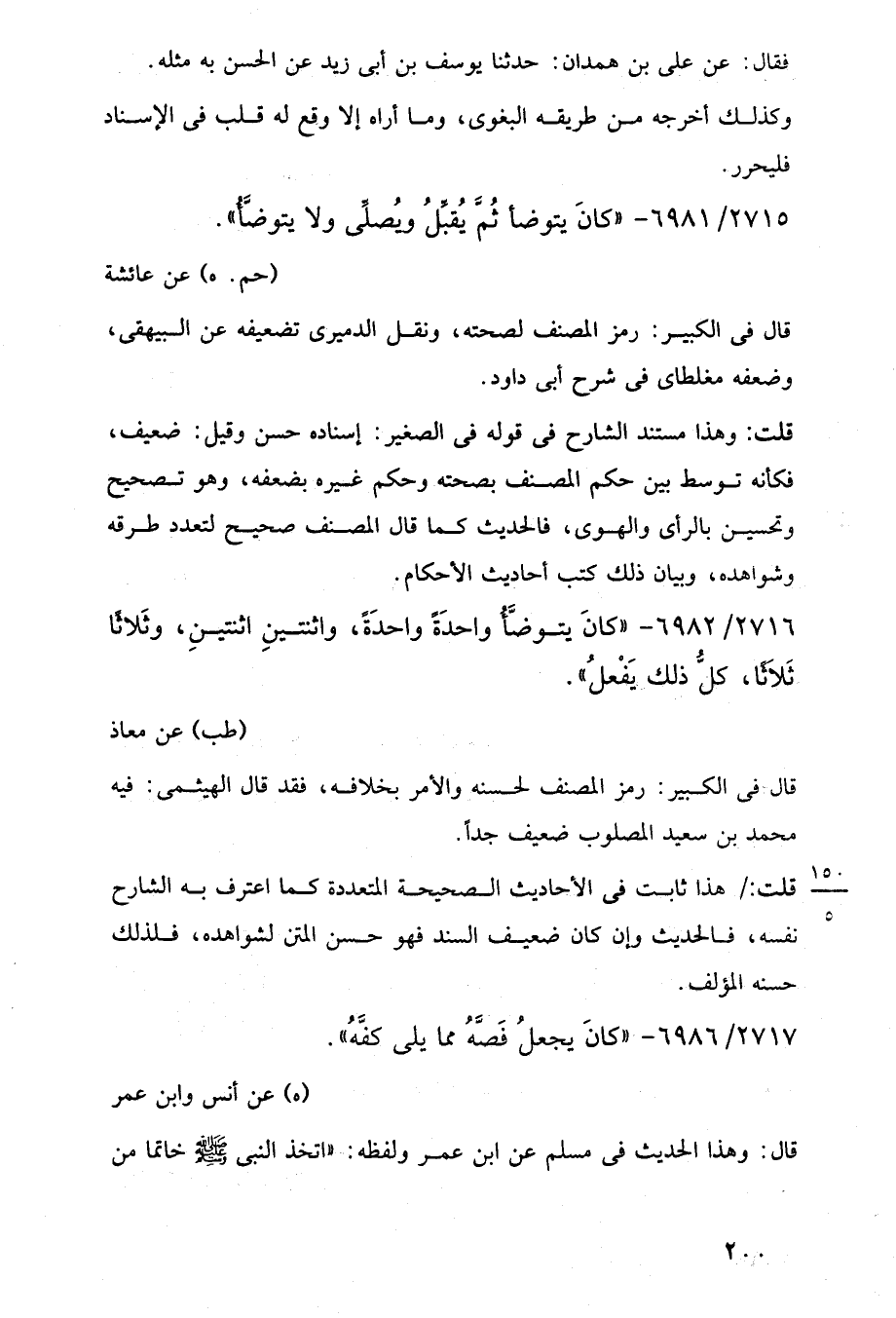 2715/ 6981 - "كانَ يتوضأ ثُمَّ يُقبِّلُ ويُصلِّى ولا يتوضَّأُ"