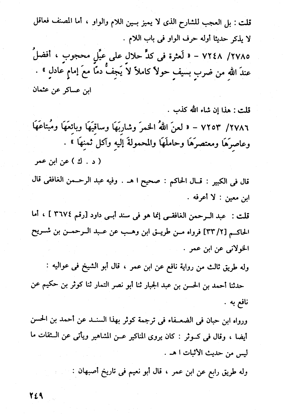 قلت: عبد الرحمن الغافقى إنما هو في سند أبي داود [رقم 3674]، أما الحاكم [2/ 33] فرواه من طريق ابن وهب عن عبد الرحمن بن شريح الخولانى عن ابن عمر.
