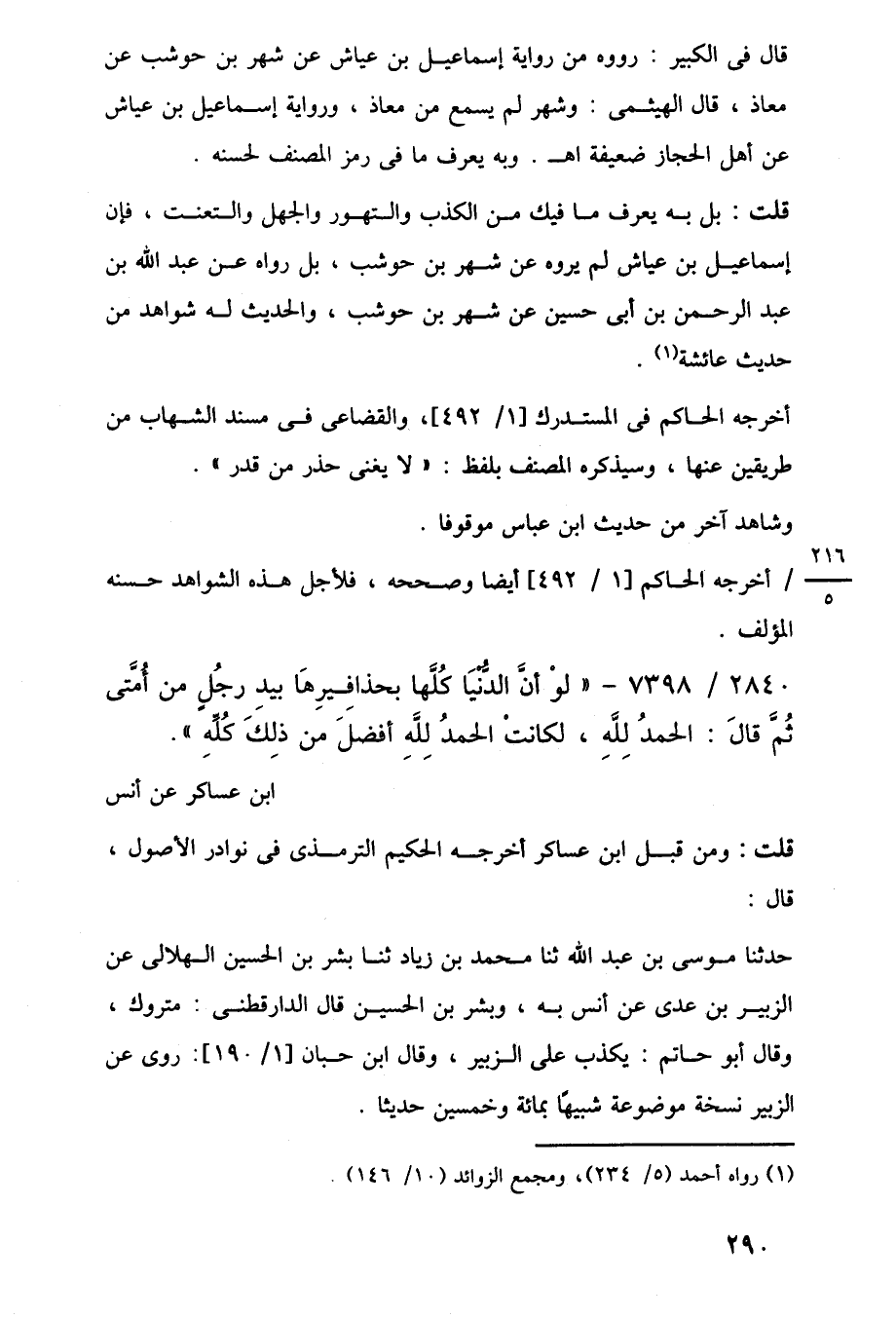 قلت: بل به يعرف ما فيك من الكذب والتهور والجهل والتعنت، فإن إسماعيل بن عياش لم يروه عن شهر بن حوشب، بل رواه عن عبد اللَّه بن عبد الرحمن بن أبي حسين عن شهر بن حوشب، والحديث له شواهد من حديث عائشة (¬1).