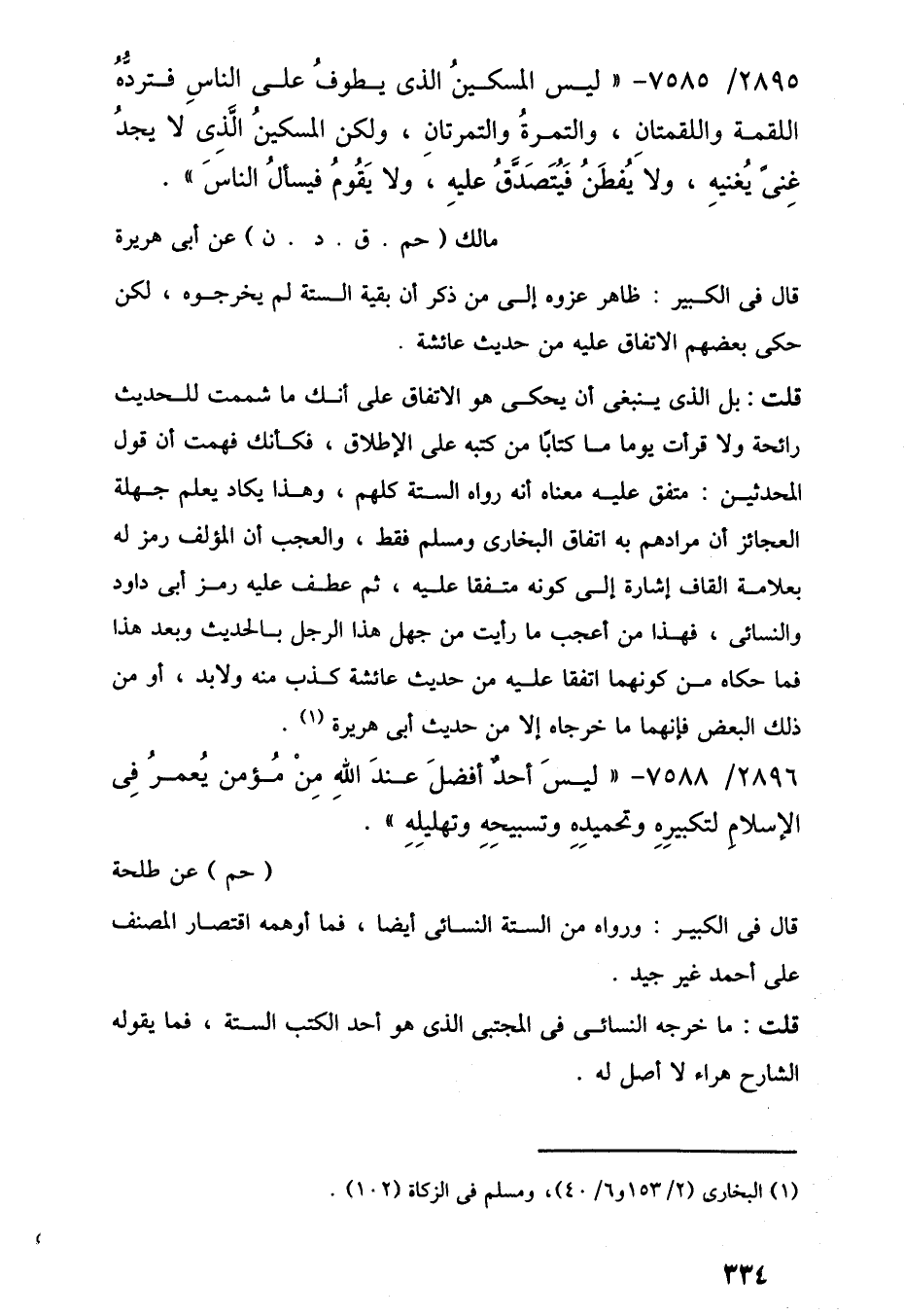 2895/ 7585 - "ليس المسكينُ الذي يطوفُ على الناسِ فتردُّهُ اللقمة واللقمتانِ، والتمرةُ والتمرتانِ، ولكن المسكينُ الَّذِى لا يجدُ غِنًى يُغنيهِ، ولا يُفطَنُ فَيُتَصَدَّقُ عليهِ، ولا يَقُومُ فيسألُ الناسَ".