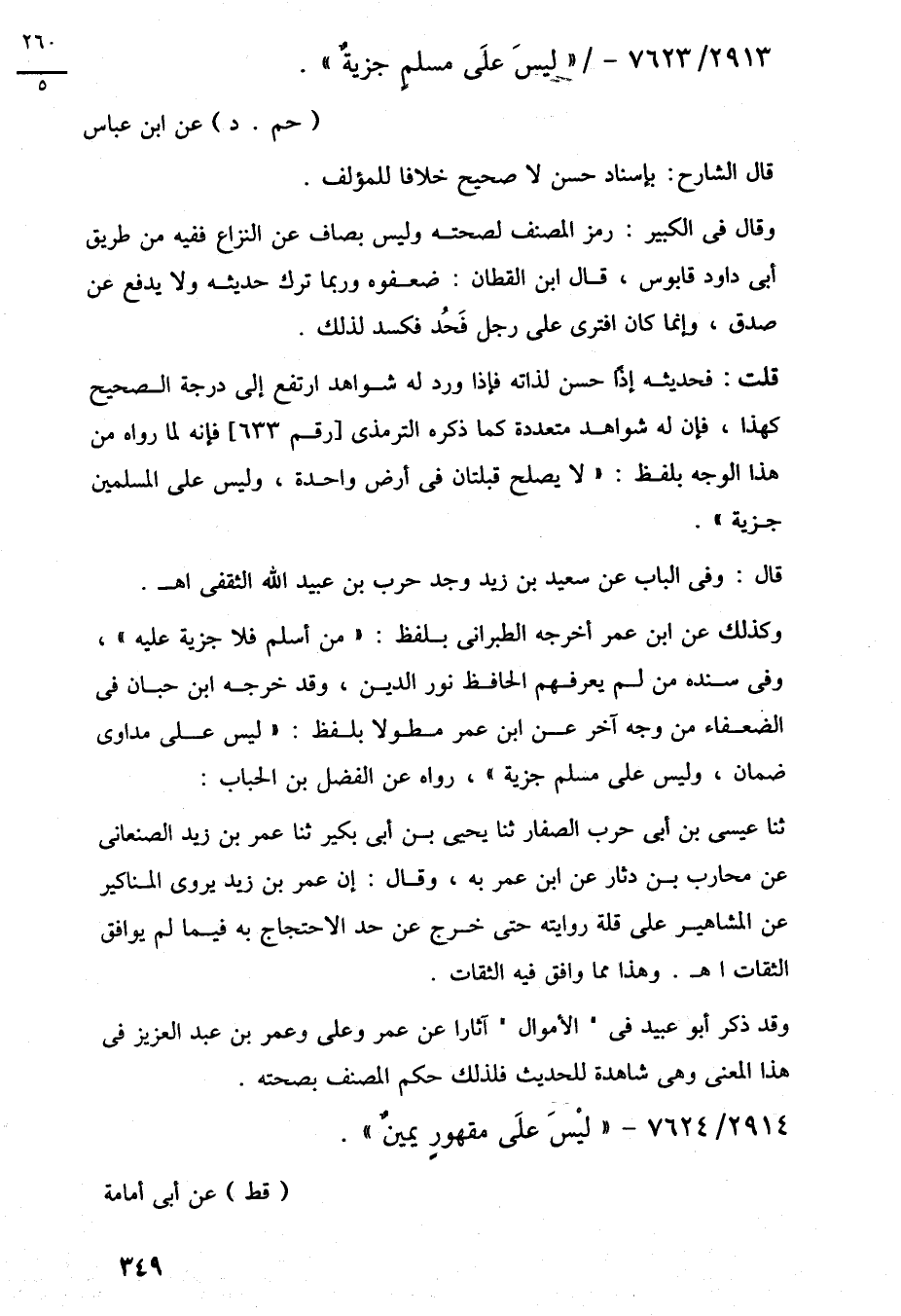 2913/ 7623 - "ليسَ علَى مسلمٍ جزيةٌ".