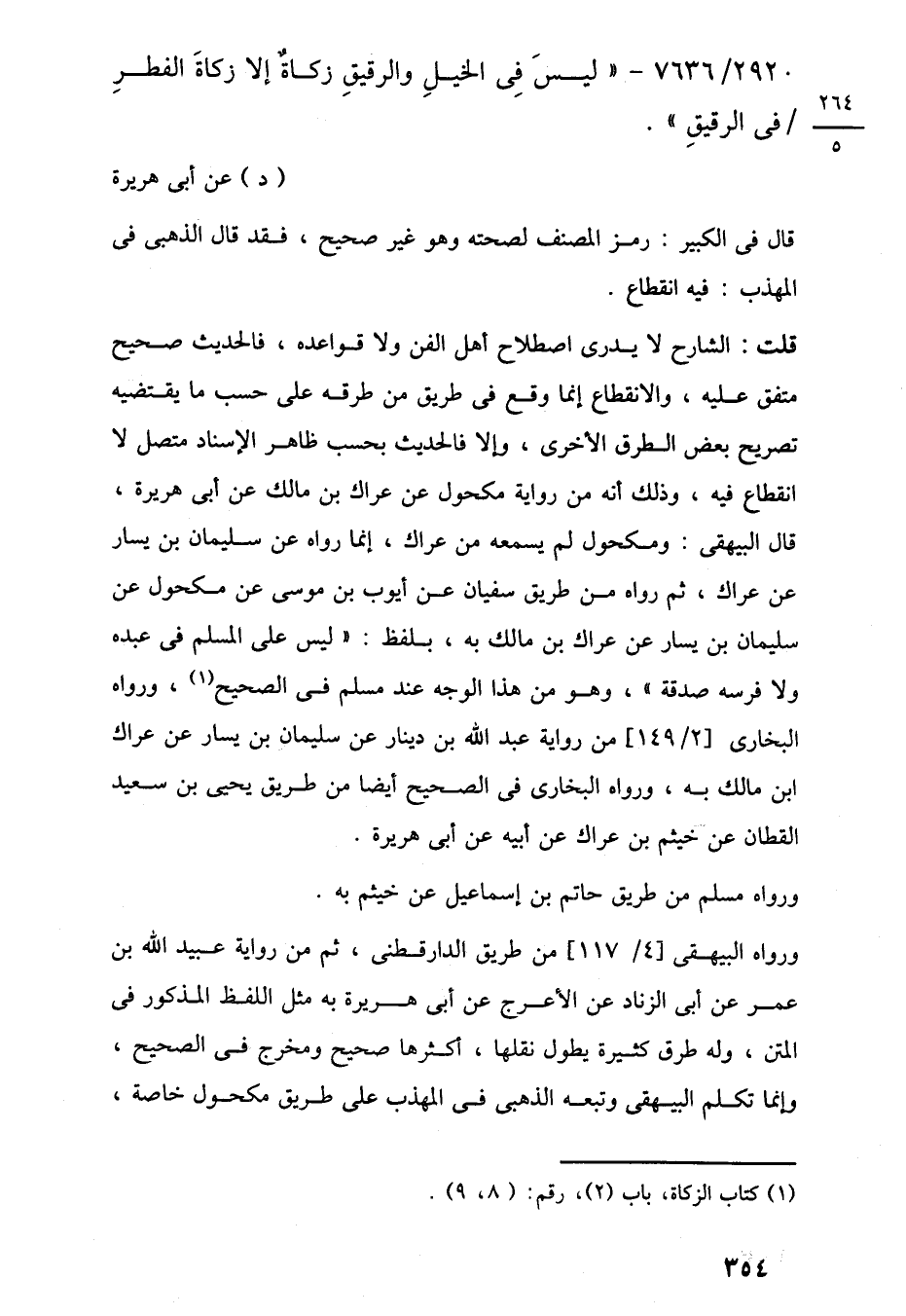 2920/ 7636 - "ليسَ فِي الخيلِ والرقيقِ زكاةٌ إلا زكاةَ الفطرِ في الرقيقِ".