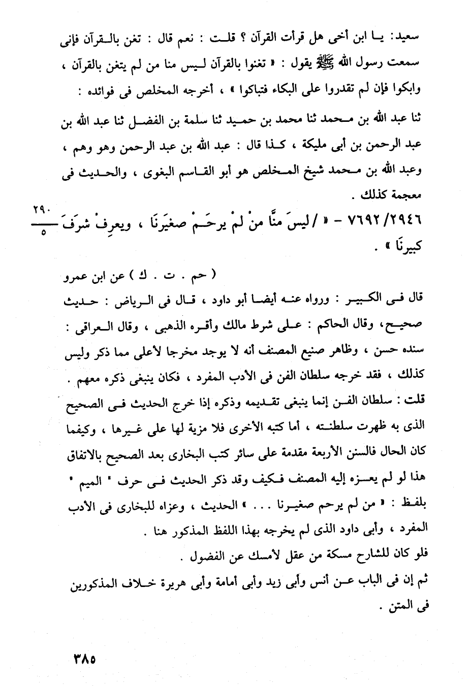 2946/ 7692 - "ليسَ منَّا منْ لمْ يرحَمْ صغيَرنَا، ويعرِفْ شرَفَ كبيرنَا".