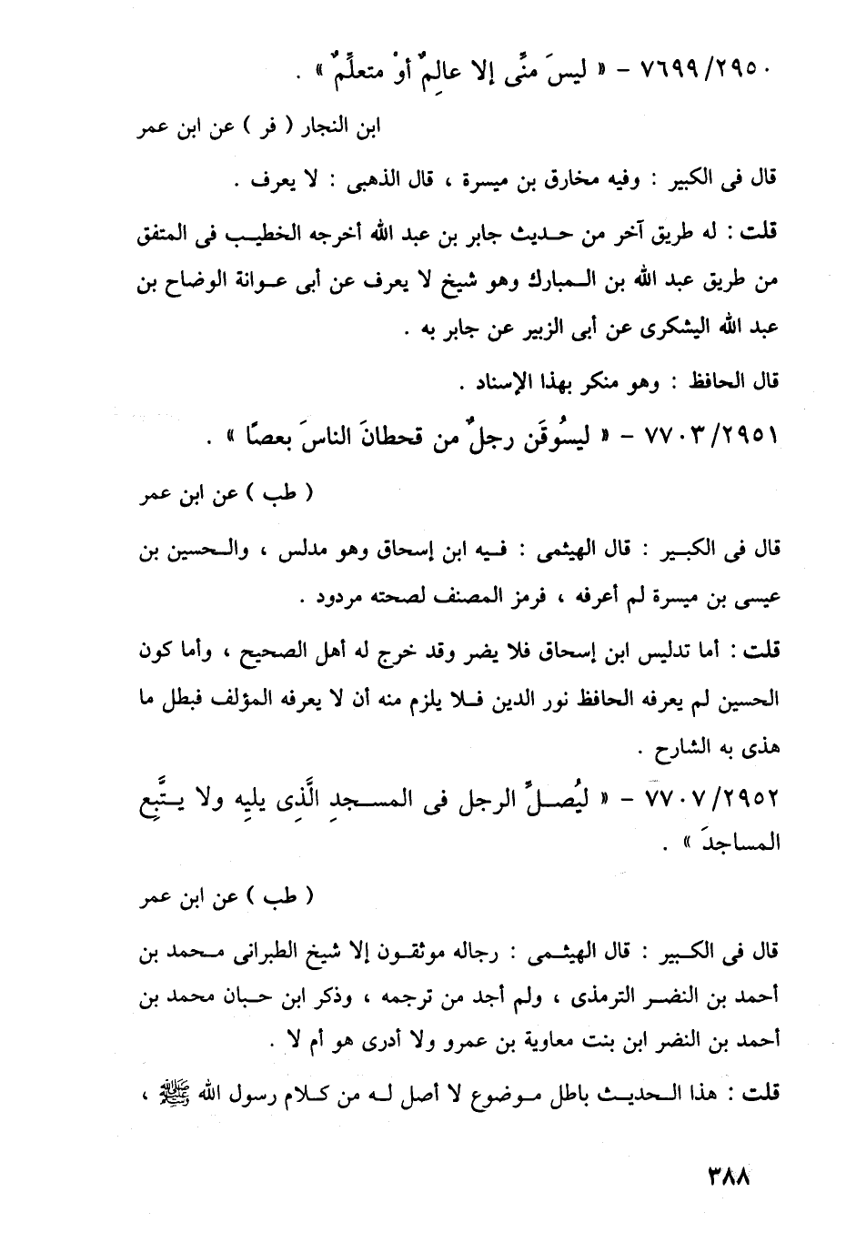 2950/ 7699 - "ليسَ منِّى إلا عالِمٌ أوْ متعلِّمٌ".