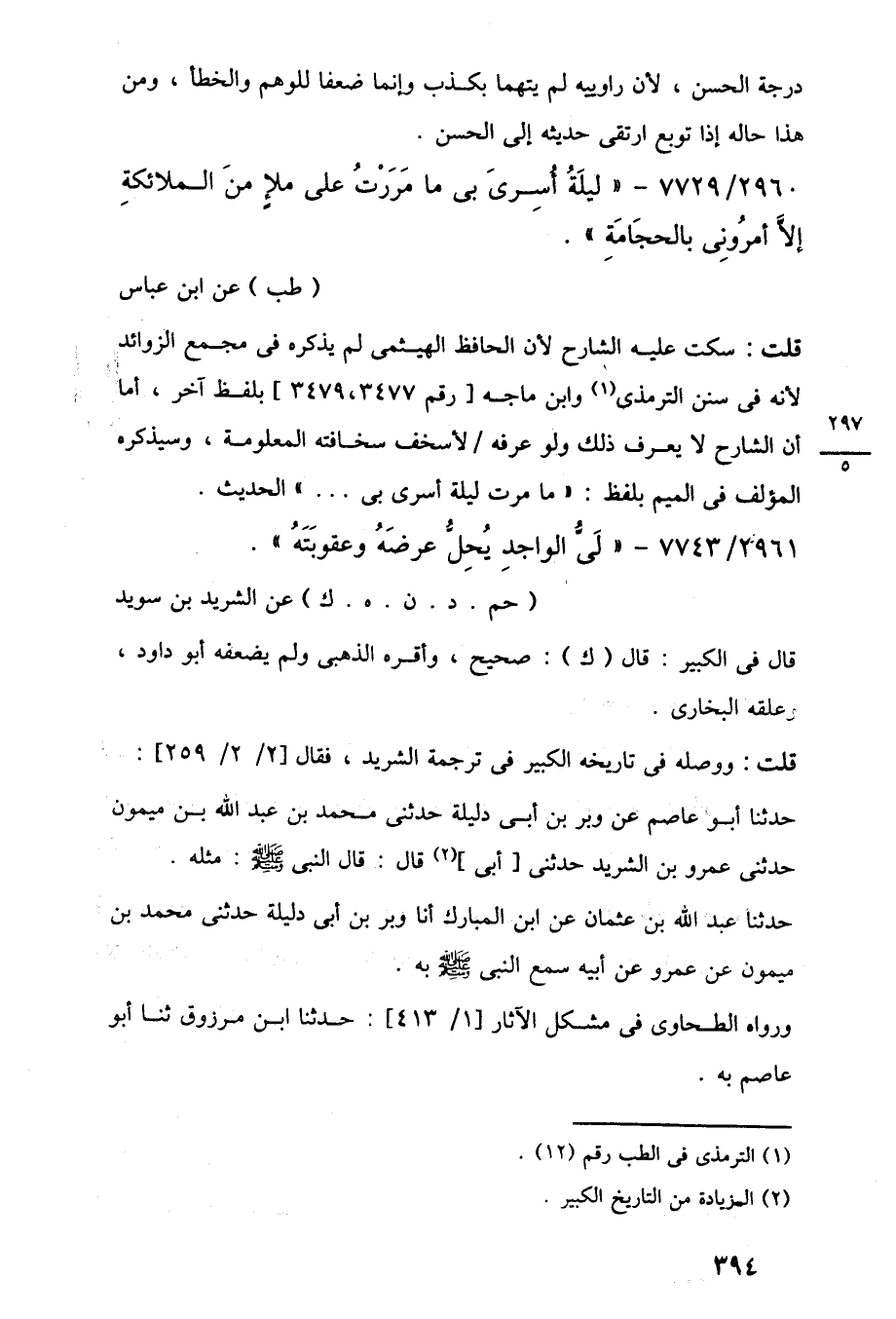 2960/ 7729 - "ليلَةُ أُسِرى بى ما مَرَرْتُ على ملإٍ منَ الملائكةِ إلَّا أمرُونِى بالحجَامَةِ".