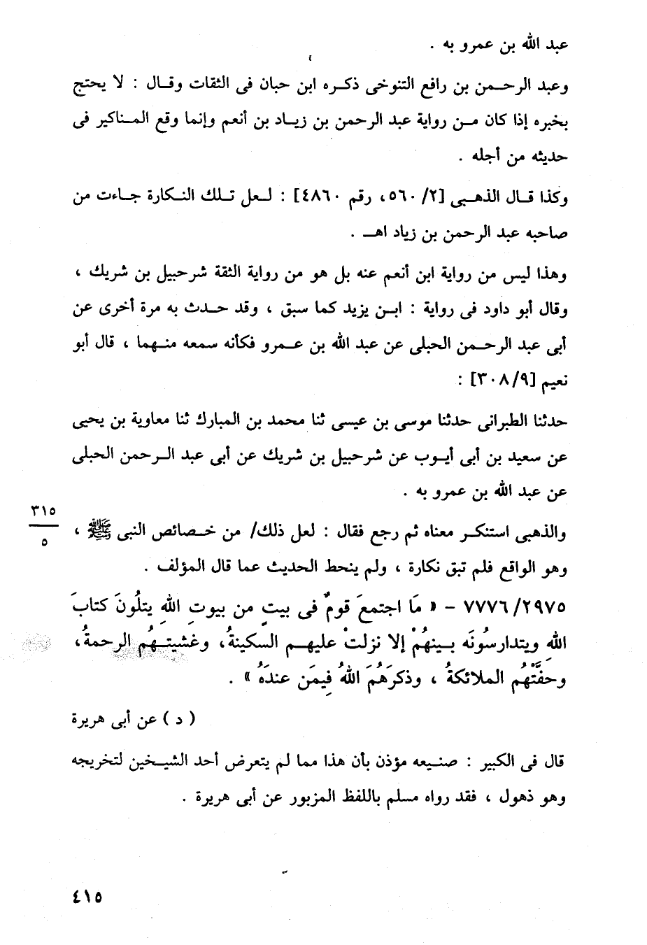 2975/ 7776 - "مَا اجتمعَ قومٌ في بيتٍ من بيوتِ اللَّهِ يتلُونَ كتابَ اللَّهِ ويتدارسُونَه يينهُمْ إلا نزلتْ عليهم السكينةُ، وغشيتهُم الرحمةُ، وحفَّتْهُم الملائكةُ، وذكرَهُمَ اللَّهُ فِيمَن عندَهُ".