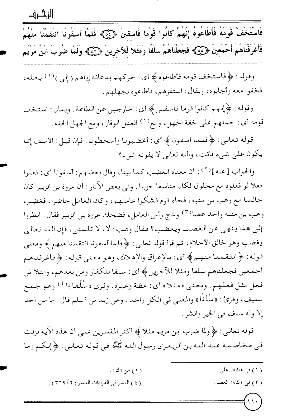{فاستخف قومه فأطاوه إِنَّهُم كَانُوا قوما فاسقين (54) فَلَمَّا آسفونا انتقمنت مِنْهُم فأغرقناهم أَجْمَعِينَ (55) فجعلناهم سلفا ومثلا للآخرين (56) وَلما ضرب ابْن مَرْيَم}