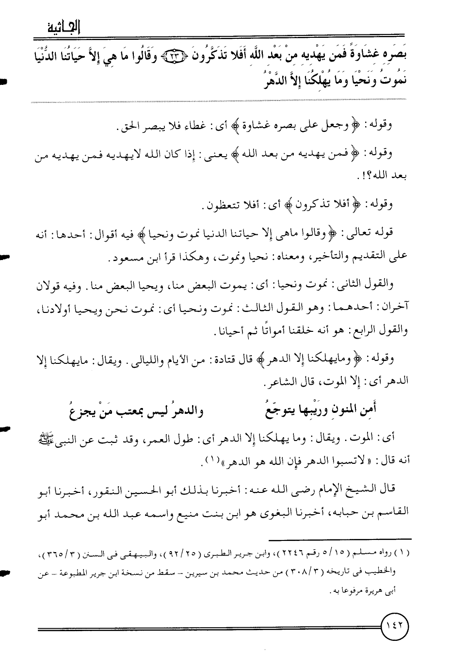 {بَصَره غشاوة فَمن يهديه من بعد الله أَفلا تذكرُونَ (23) وَقَالُوا مَا هِيَ إِلَّا حياتنا الدُّنْيَا نموت ونحيا وَمَا يُهْلِكنَا إِلَّا الدَّهْر}