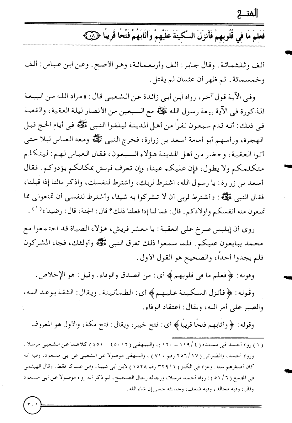 {فَعلم مَا فِي قُلُوبهم فَأنْزل السكينَة عَلَيْهِم وأثابهم فتحا قَرِيبا (18) } ألف وثلثمائة. وَقَالَ جَابر: ألف وَأَرْبَعمِائَة، وَهُوَ الْأَصَح. وَعَن ابْن عَبَّاس: ألف وَخَمْسمِائة. ثمَّ ظهر أَن عُثْمَان لم يقتل.