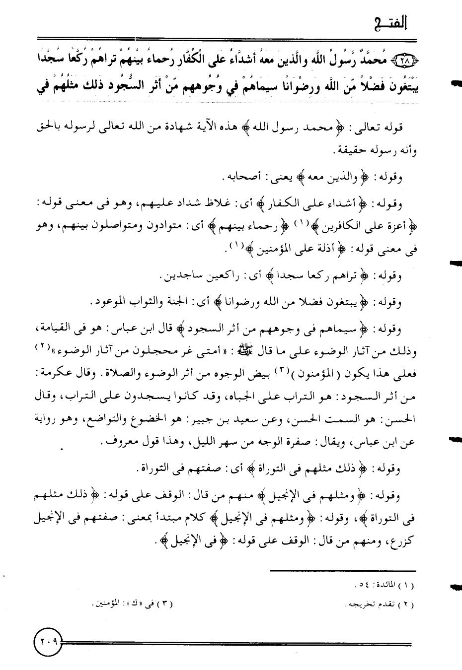 ((28} مُحَمَّد رَسُول الله وَالَّذين مَعَه أشداء على الْكفَّار رحماء بَينهم تراهم ركعا سجدا يَبْتَغُونَ فضلا من الله ورضوانا سِيمَاهُمْ فِي وُجُوههم من أثر السُّجُود ذَلِك مثلهم فِي)