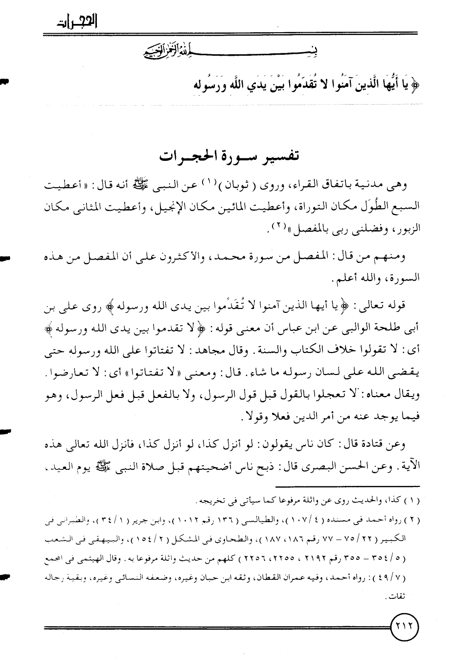 تَفْسِير سُورَة الحجرات