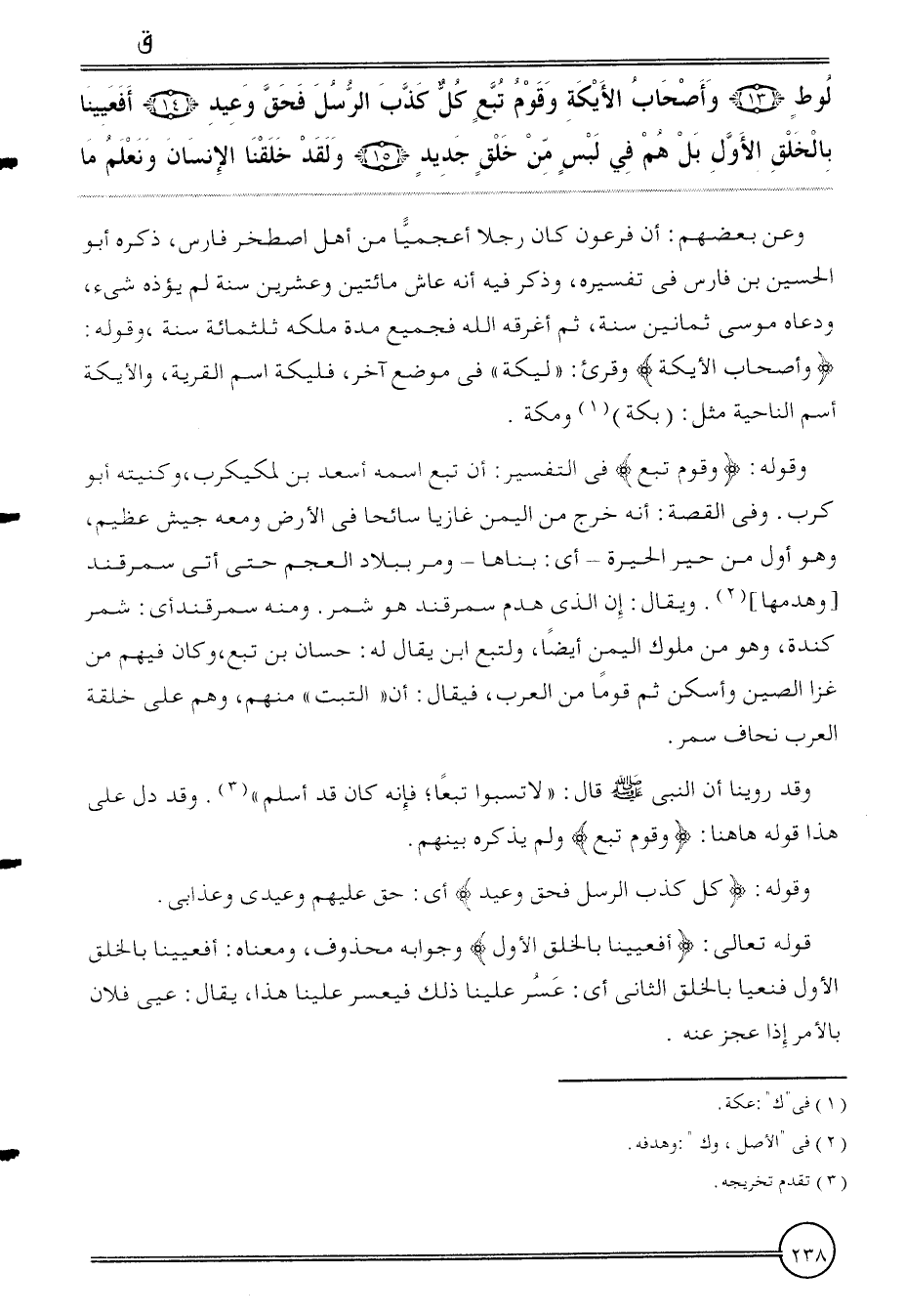 وَقَوله: {وَقوم تبع} فِي التَّفْسِير: أَن تبع اِسْعَدْ بن لمكيكرب، وكنيته أَبُو كرب. وَفِي الْقِصَّة: أَنه خرج من الْيمن غازيا سائحا فِي الأَرْض وَمَعَهُ جَيش عَظِيم، وَهُوَ أول من حير الْحيرَة أَي: بناها مر بِبِلَاد الْعَجم حَتَّى أَتَى سَمَرْقَنْد [وهدمها] . وَيُقَال: إِن الَّذِي هدم سَمَرْقَنْد هُوَ شمر. وَمِنْه سَمَرْقَنْد أَي: شمر كِنْدَة، وَهُوَ من مُلُوك الْيمن أَيْضا، ولتبع ابْن يُقَال لَهُ: حسان بن تبع، وَكَانَ فيهم من غزا الصين وأسكن ثمَّ قوما من الْعَرَب، فَيُقَال: أَن " التبت " مِنْهُم، وهم على خلقَة الْعَرَب نحاف سمر.
