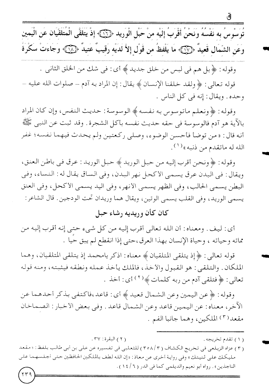 {توسوس بِهِ نَفسه وَنحن أقرب إِلَيْهِ من حَبل الوريد (16) إِذْ يتلَقَّى الملتقيان عَن الْيَمين وَعَن الشمَال قعيد (17) مَا يلفظ من قَول إِلَّا لَدَيْهِ رَقِيب عتيد (18) وَجَاءَت سكرة}