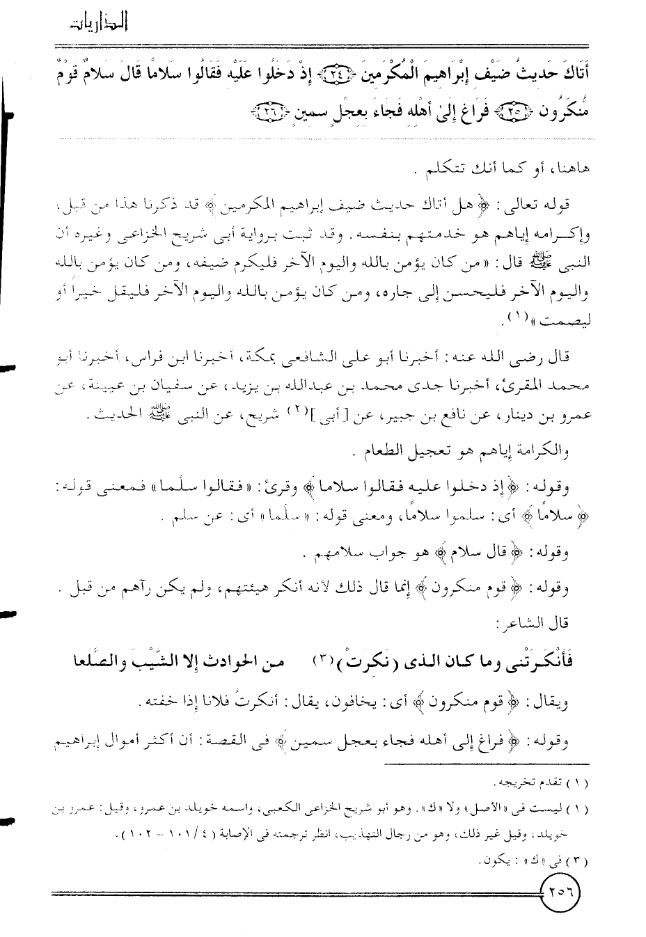 {أَتَاك حَدِيث ضيف إِبْرَاهِيم الْمُكرمين (24) إِذْ دخلُوا عَلَيْهِ فَقَالُوا سَلاما قَالَ سَلام قوم منكرون (25) فرَاغ إِلَى أَهله فجَاء بعجل سمين (26) } هَاهُنَا، أَو مَا كَمَا أَنَّك تَتَكَلَّم.