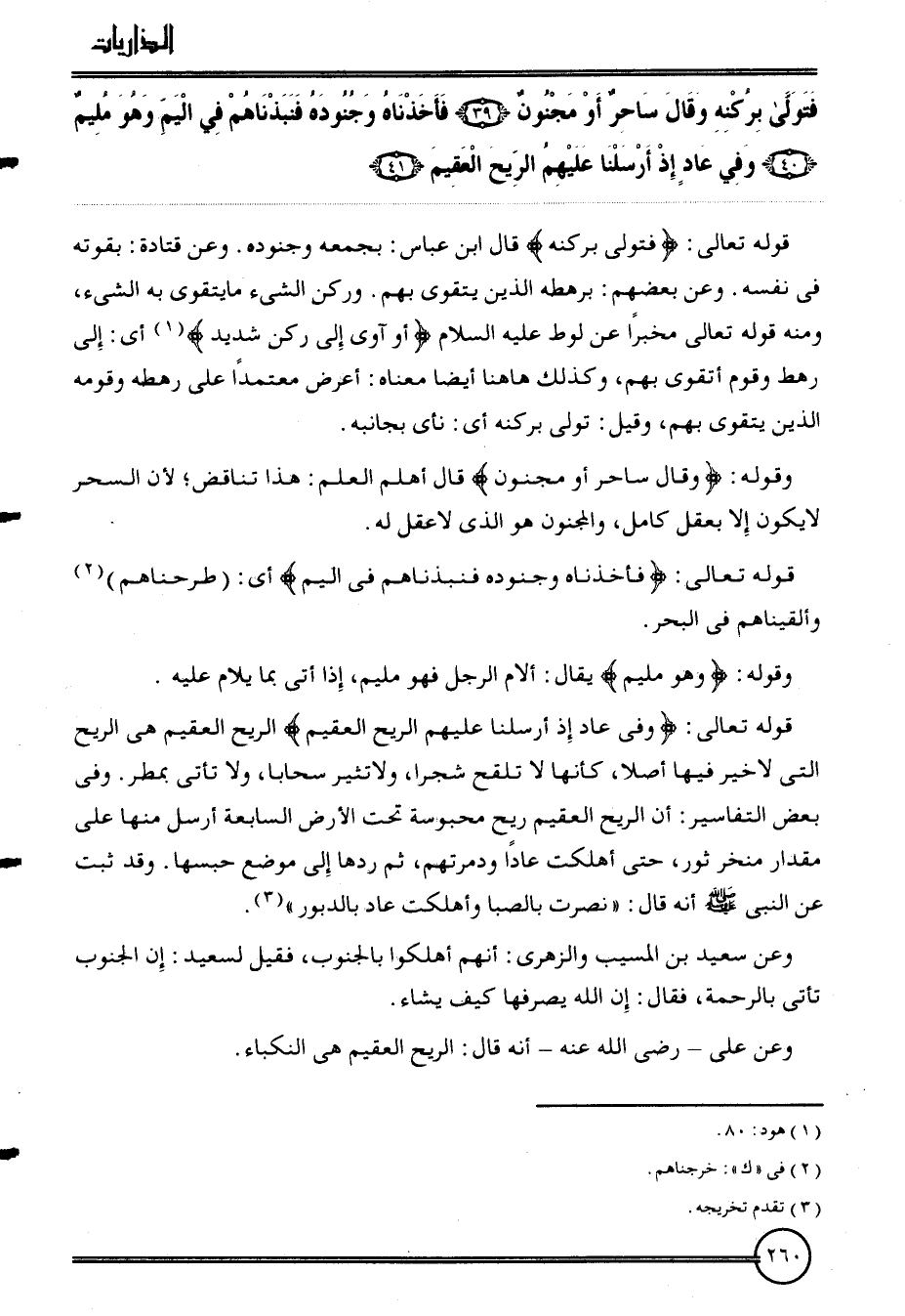 {فَتَوَلّى بركنه وَقَالَ سَاحر أَو مَجْنُون (39) فأخذناه وَجُنُوده فنبذناهم فِي اليم وَهُوَ مليم (40) وَفِي عَاد إِذْ أرسلنَا عَلَيْهِم الرّيح الْعَقِيم (41) }