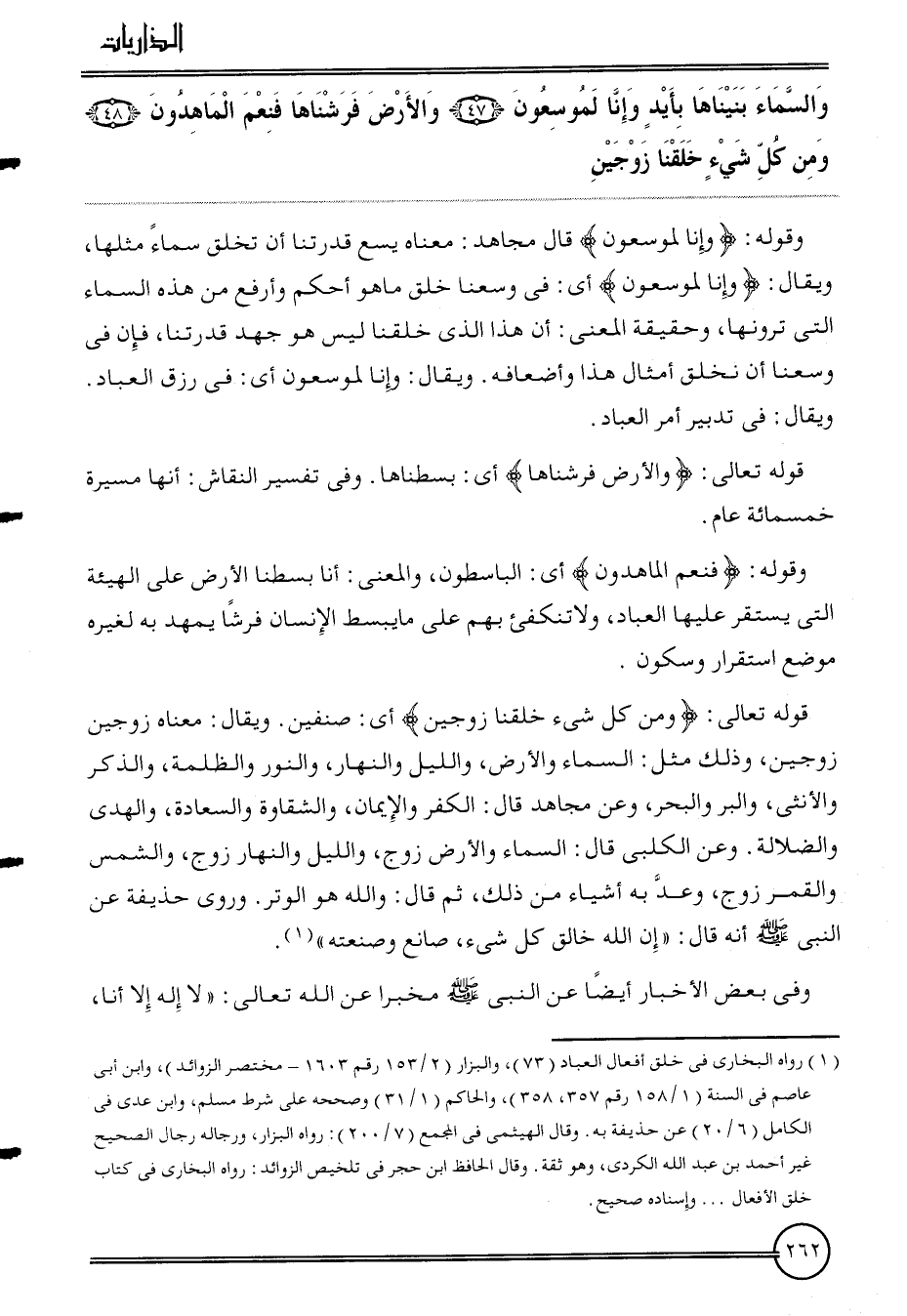 {وَالسَّمَاء بنيناها بأيد وَإِنَّا لموسعون (47) وَالْأَرْض فرشناها فَنعم الماهدون (48) وَمن كل شَيْء خلقنَا زَوْجَيْنِ}