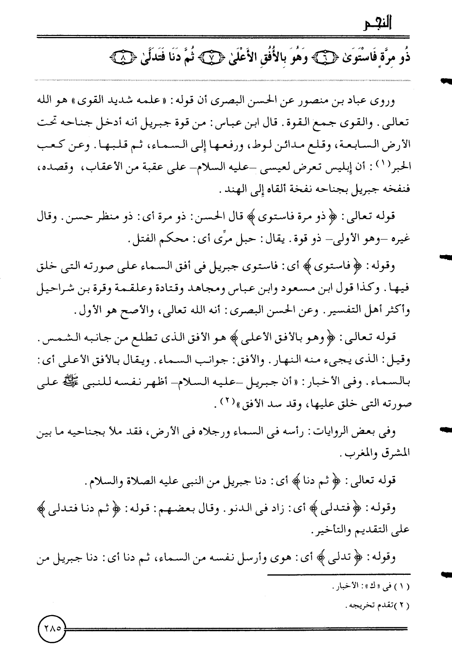 {ذُو مرّة فَاسْتَوَى (6) وَهُوَ بالأفق الْأَعْلَى (7) ثمَّ دنا فَتَدَلَّى (8) }