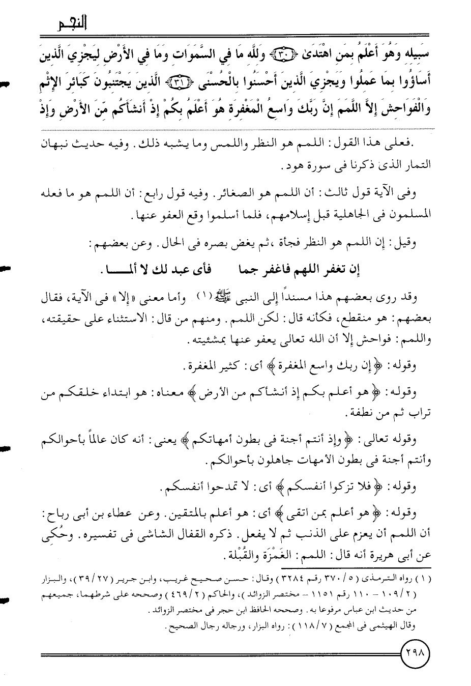 {سَبيله وَهُوَ أعلم بِمن اهْتَدَى (30) وَللَّه مَا فِي السَّمَوَات وَمَا فِي الأَرْض ليجزي الَّذين أساؤوا بِمَا عمِلُوا وَيجْزِي الَّذين أَحْسنُوا بِالْحُسْنَى (31) الَّذين يجتنبون كَبَائِر الْإِثْم وَالْفَوَاحِش إِلَّا اللمم إِن رَبك وَاسع الْمَغْفِرَة هُوَ أعلم بكم إِذا أنشأكم من الأَرْض وَإِذ}