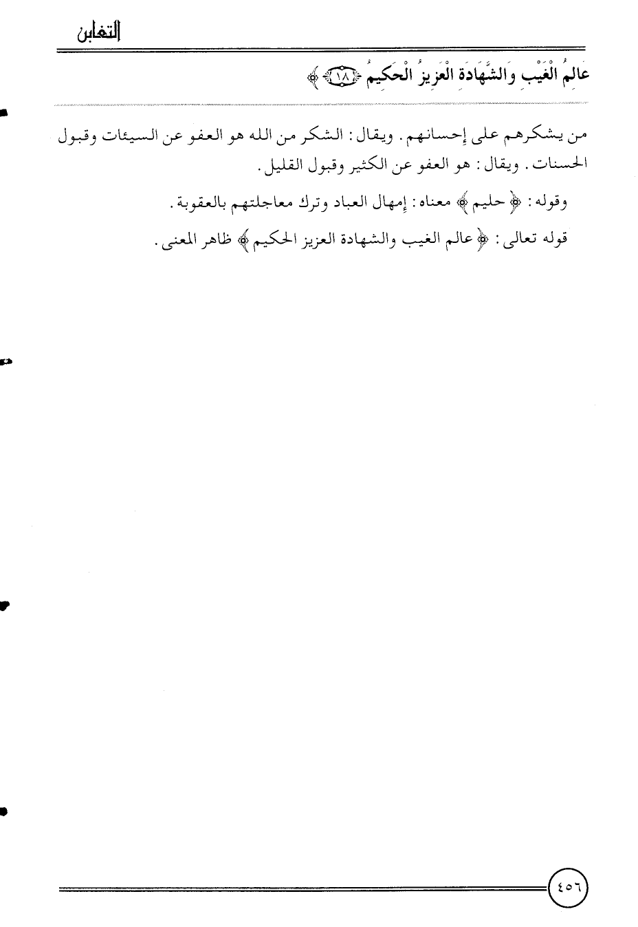 قَوْله تَعَالَى: {عَالم الْغَيْب وَالشَّهَادَة الْعَزِيز الْحَكِيم} ظَاهر الْمَعْنى.