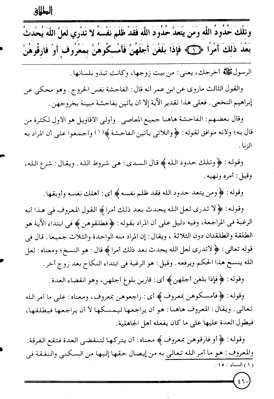 {وَتلك حُدُود الله وَمن يَتَعَدَّ حُدُود الله فقد ظلم نَفسه لَا تَدْرِي لَعَلَّ الله يحدث بعد ذَلِك أمرا (1) فَإِذا بلغن أَجلهنَّ فأمسكوهن بِمَعْرُوف أَو فارقوهن} الرَّسُول أخرجك، يَعْنِي: من بَيت زَوجهَا، وَكَانَت تبذو بلسانها.
