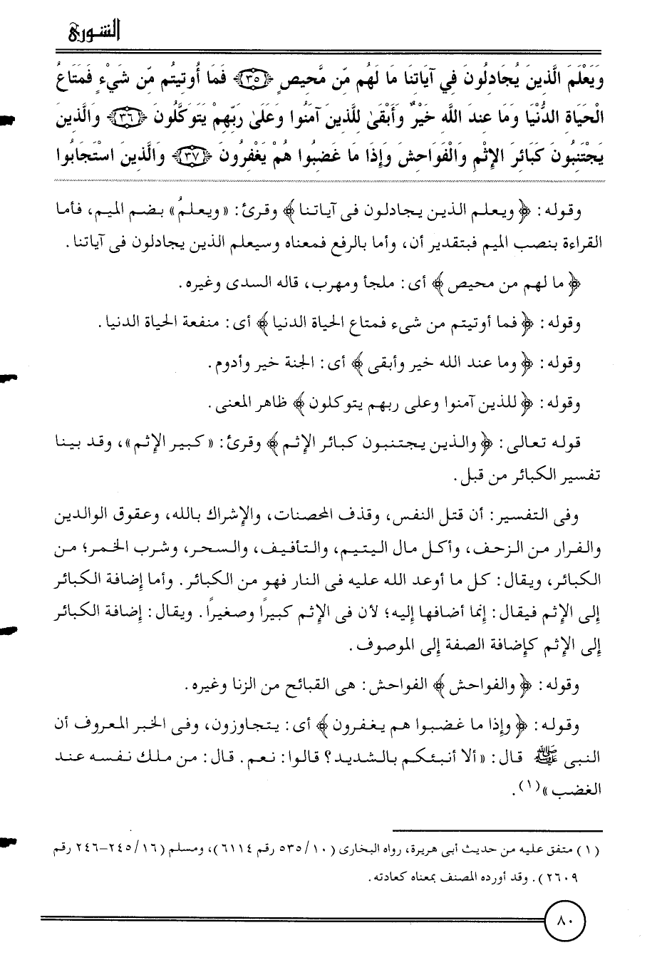 {وَيعلم الَّذين يجادلون فِي آيَاتنَا مَا لَهُم من محيص (35) فَمَا أُوتِيتُمْ من شَيْء فمتاع الْحَيَاة الدُّنْيَا وَمَا عِنْد الله خير وَأبقى للَّذين آمنُوا وعَلى رَبهم يَتَوَكَّلُونَ (36) وَالَّذين يجتنبون كَبَائِر الْإِثْم وَالْفَوَاحِش وَإِذا مَا غضبوا وهم يغفرون (37) وَالَّذين اسْتَجَابُوا}