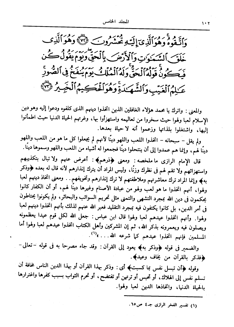 (1) تفسير الفخر الرازي ج 4 ص 65.