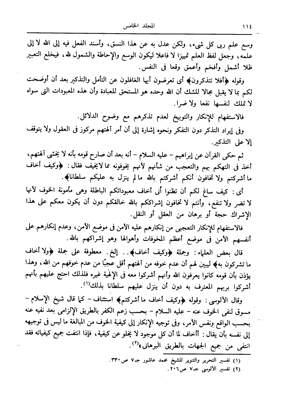 (1) تفسير التحرير والتنوير للشيخ محمد عاشور ج 7 ص 330.