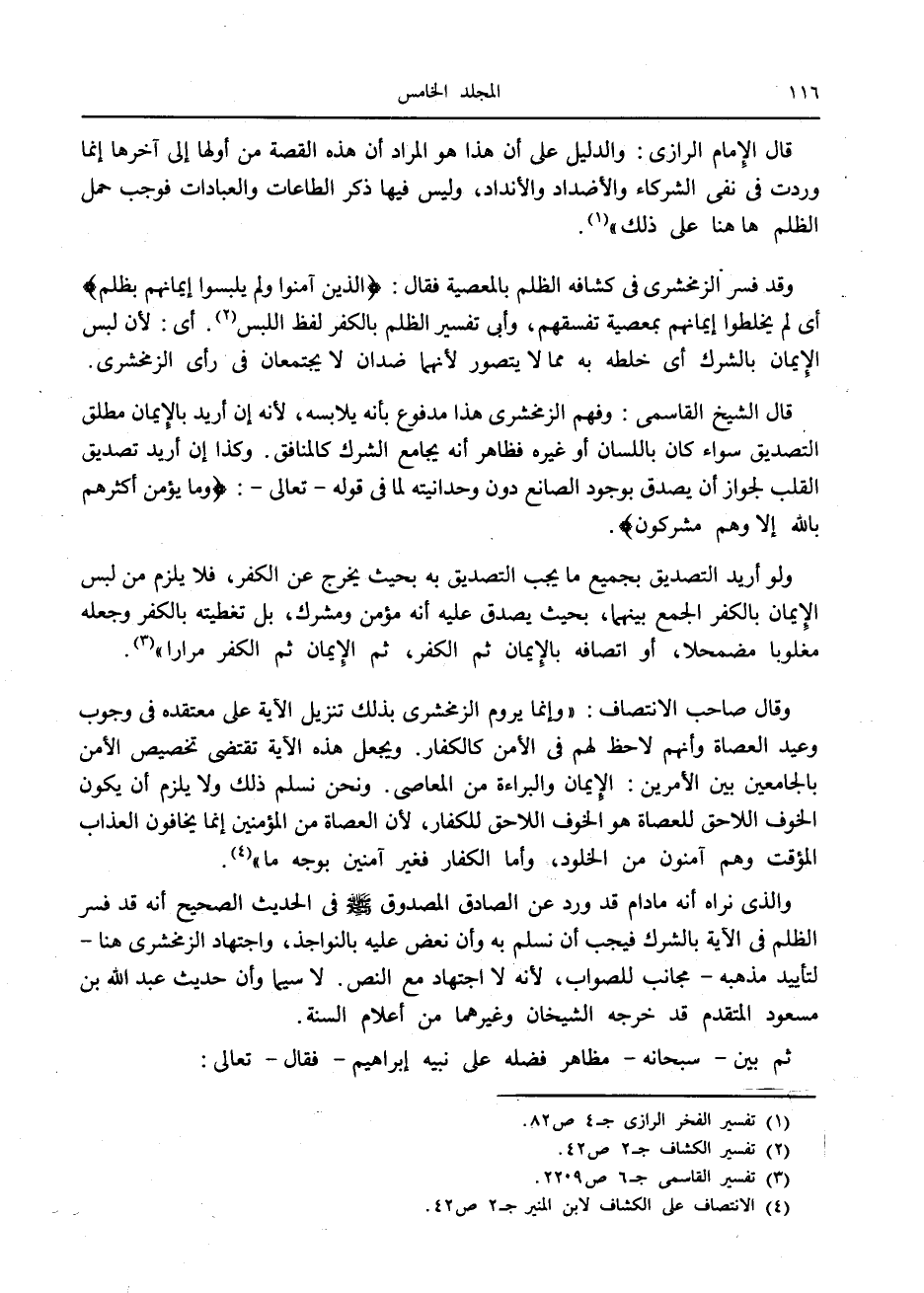 (4) الانتصاف على الكشاف لابن المنير ج 2 ص 42.