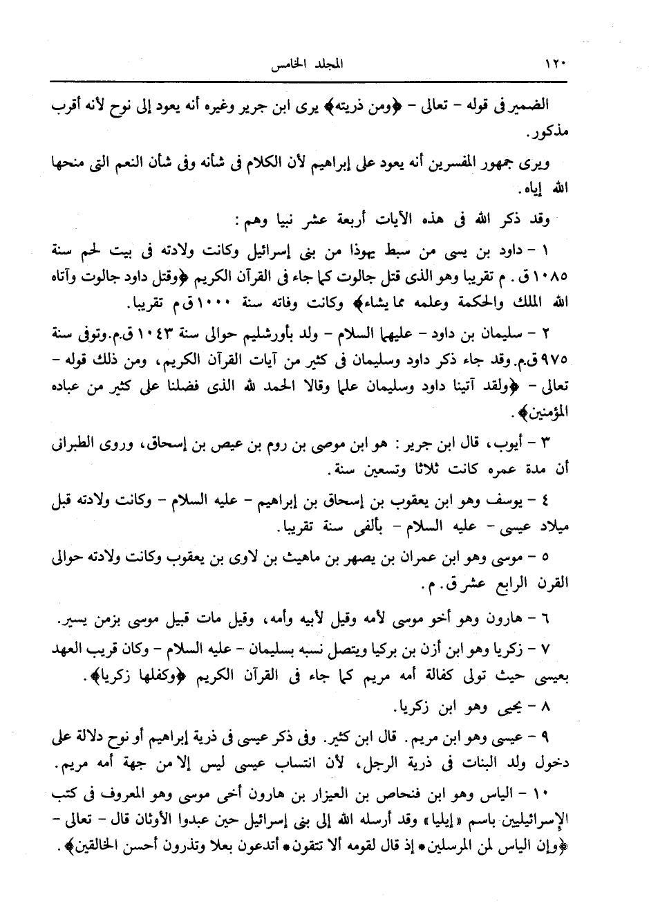 9- عيسى وهو ابن مريم. قال ابن كثير. وفي ذكر عيسى في ذرية إبراهيم أو نوح دلالة على دخول ولد البنات في ذرية الرجل، لأن انتساب عيسى ليس إلا من جهة أمه مريم.
