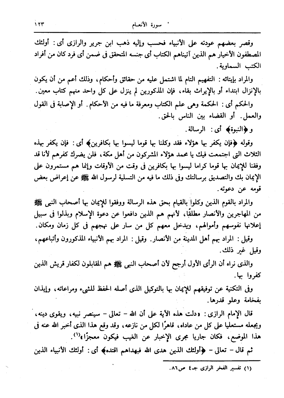 (1) تفسير الفخر الرازي ج 4 ص 86.