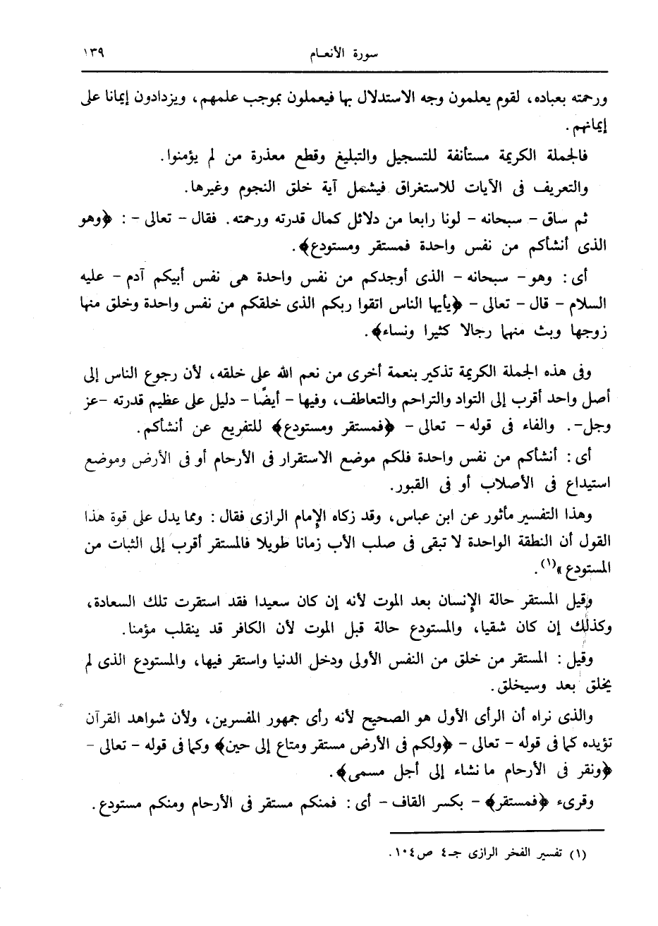 (1) تفسير الفخر الرازي ج 4 ص 104.