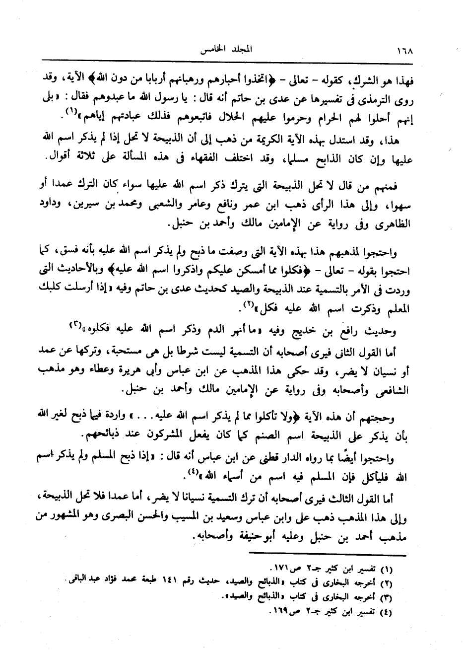 (2) أخرجه البخاري في كتاب «الذبائح والصيد، حديث رقم 141 طبعة محمد فؤاد عبد الباقي.