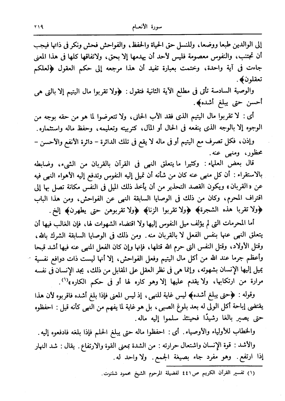 (1) تفسير القرآن الكريم ص 441 لفضيلة المرحوم الشيخ محمود شلتوت.