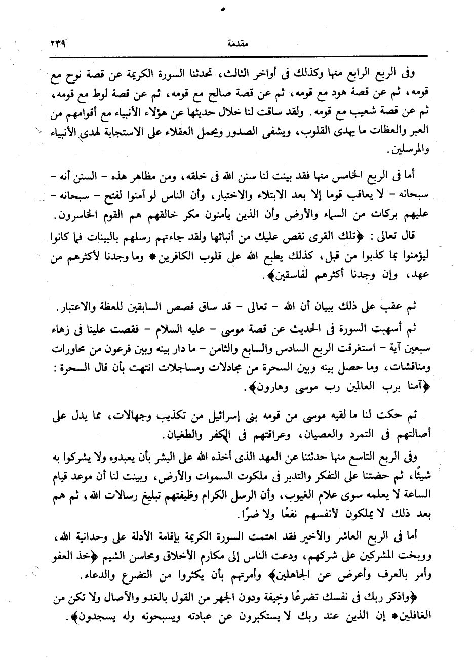وفي الربع التاسع منها حدثتنا عن العهد الذي أخذه الله على البشر بأن يعبدوه ولا يشركوا به شيئا، ثم حضتنا على التفكر والتدبر في ملكوت السموات والأرض، وبينت لنا أن موعد قيام الساعة لا يعلمه سوى علام الغيوب، وأن الرسل الكرام وظيفتهم تبليغ رسالات الله، ثم هم بعد ذلك لا يملكون لأنفسهم نفعا ولا ضرا.