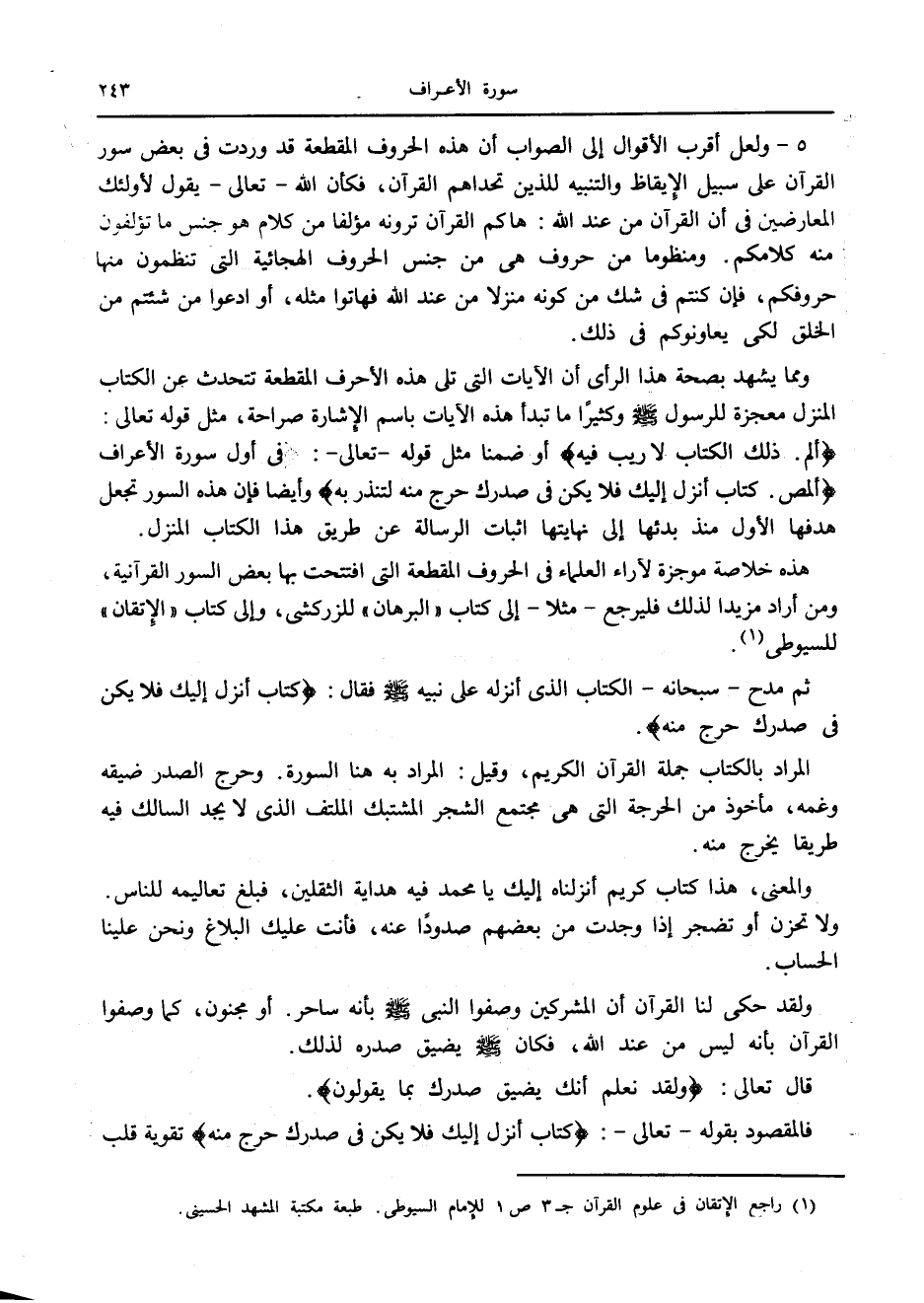 (1) راجع الإتقان في علوم القرآن ج 3 ص 1 للإمام السيوطي. طبعة مكتبة المشهد الحسيني.