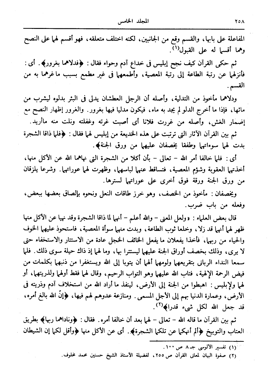 (2) صفوة البيان لمعانى القرآن ص 255، لفضيلة الأستاذ الشيخ حسنين محمد مخلوف.