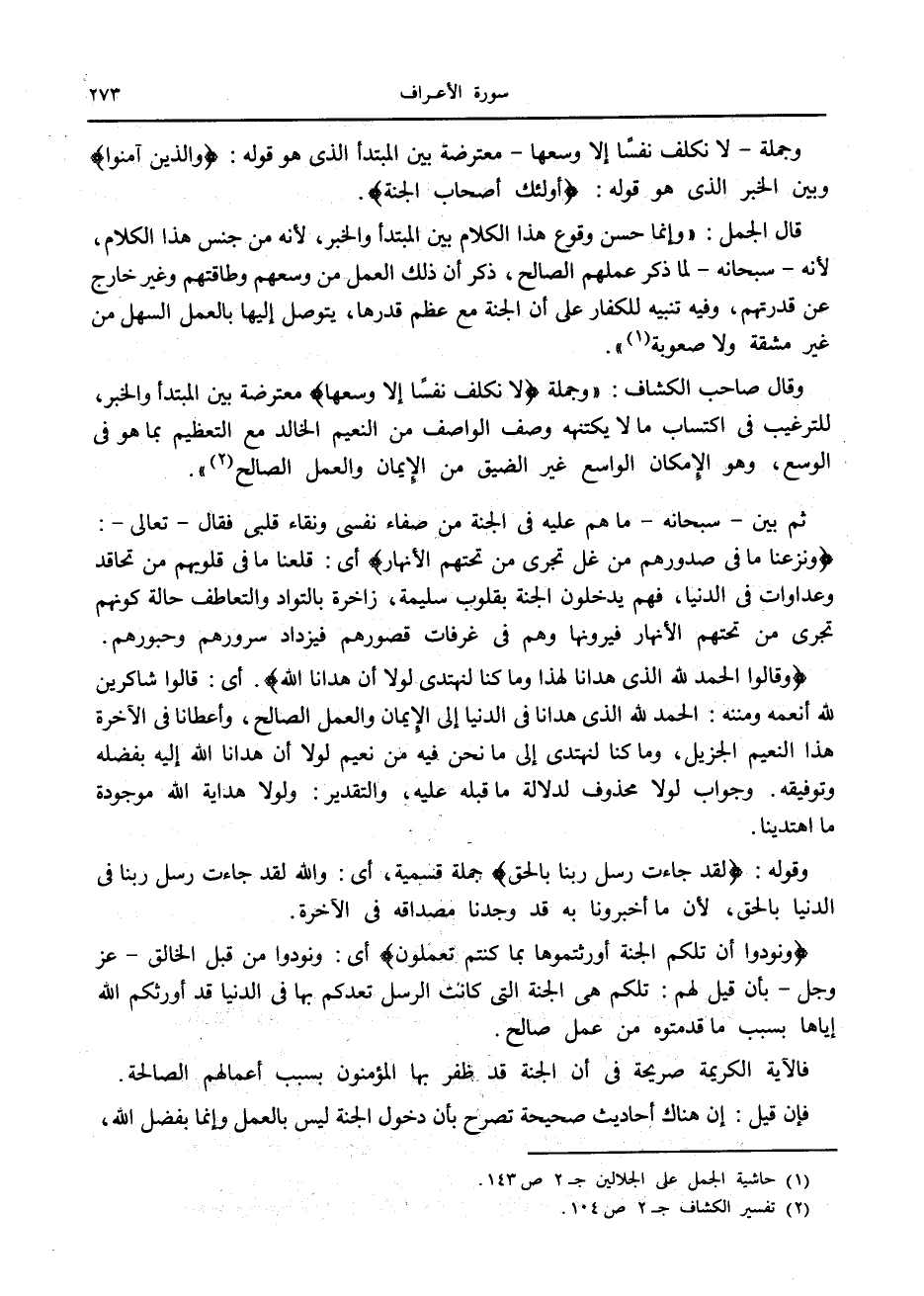 (1) حاشية الجمل على الجلالين ج 2 ص 143.