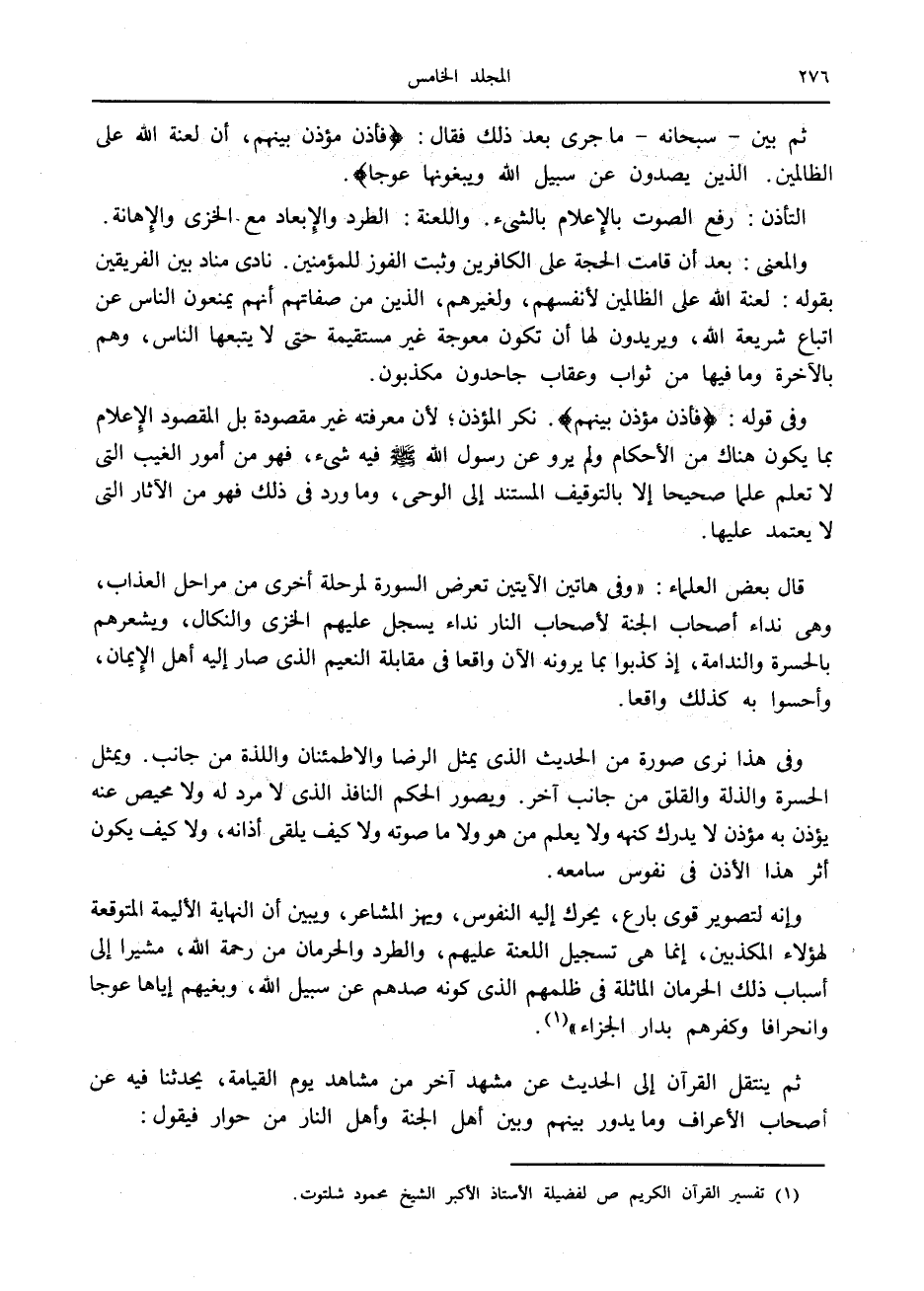 (1) تفسير القرآن الكريم ص لفضيلة الأستاذ الأكبر الشيخ محمود شلتوت.