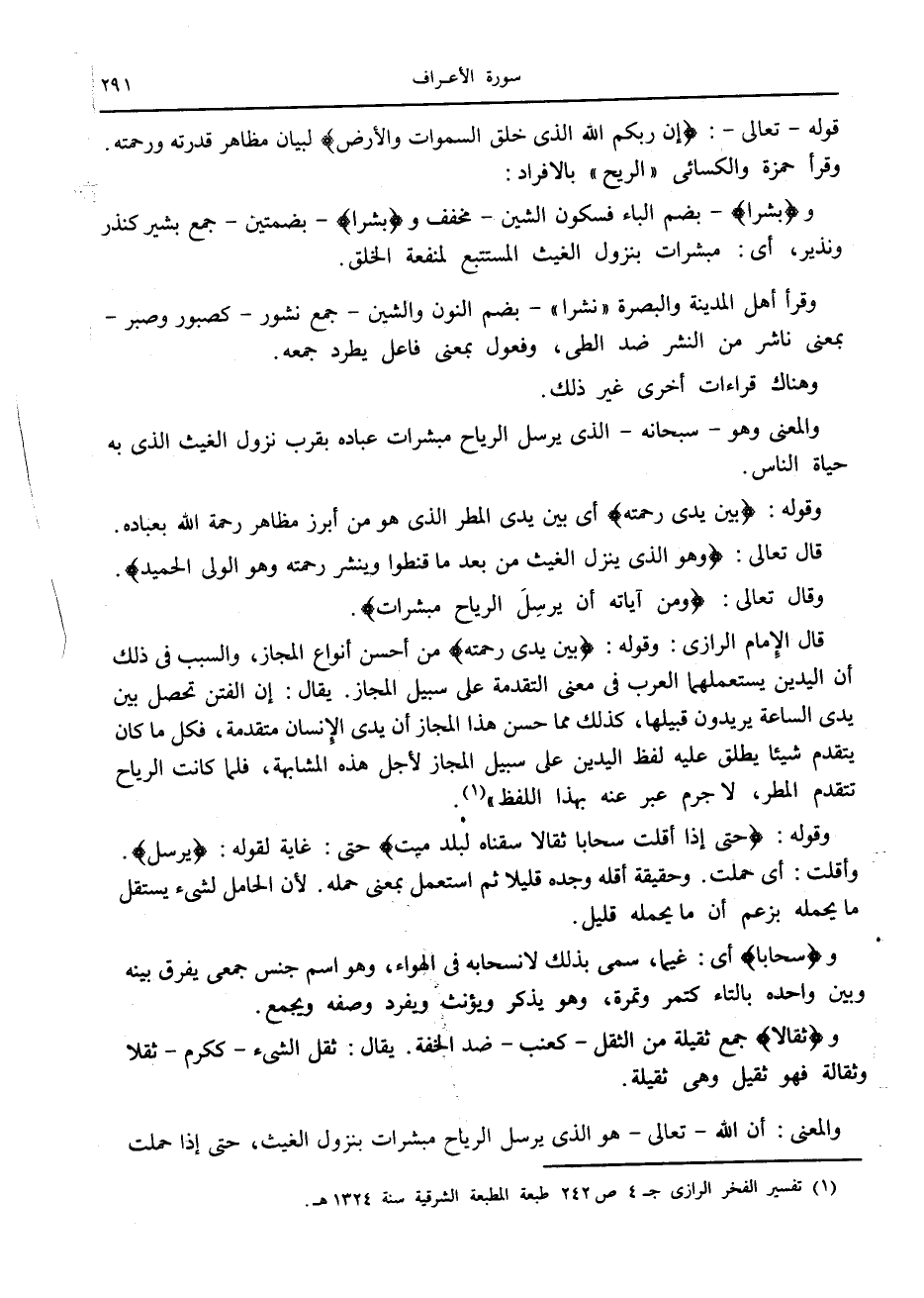 (1) تفسير الفخر الرازي ج 4 ص 242 طبعة المطبعة الشرقية سنة 1324 هـ.