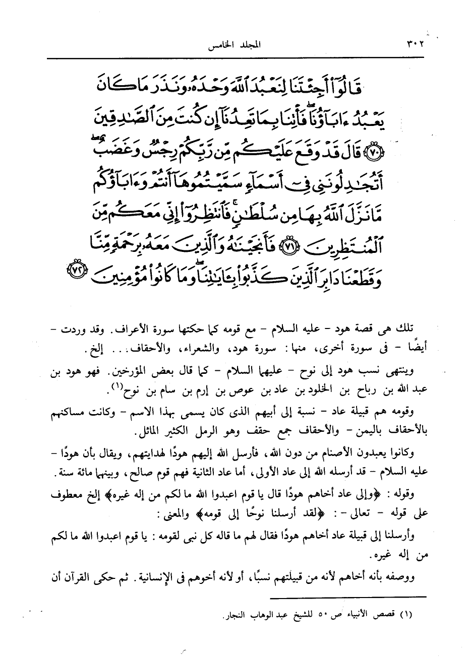 تلك هي قصة هود- عليه السلام- مع قومه كما حكتها سورة الأعراف. وقد وردت- أيضا- في سورة أخرى، منها: سورة هود، والشعراء، والأحقاف ... إلخ.