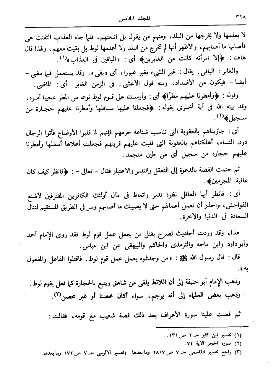 (3) راجع تفسير القاسمى ج 7 ص 2807 وما بعدها. وتفسير الآلوسى ج 7 ص 172 وما بعدها.