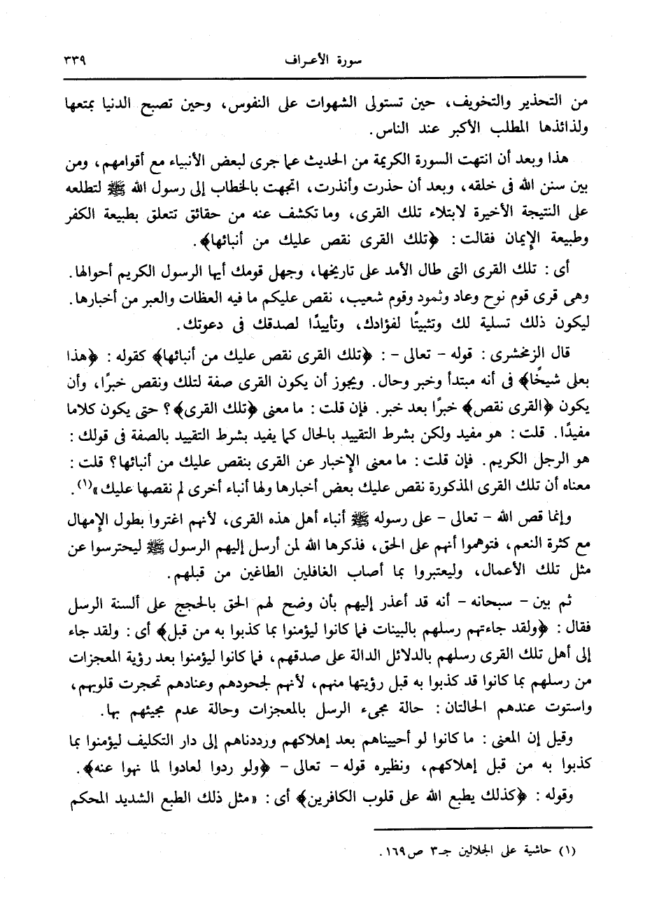(1) حاشية على الجلالين ج 3 ص 169.