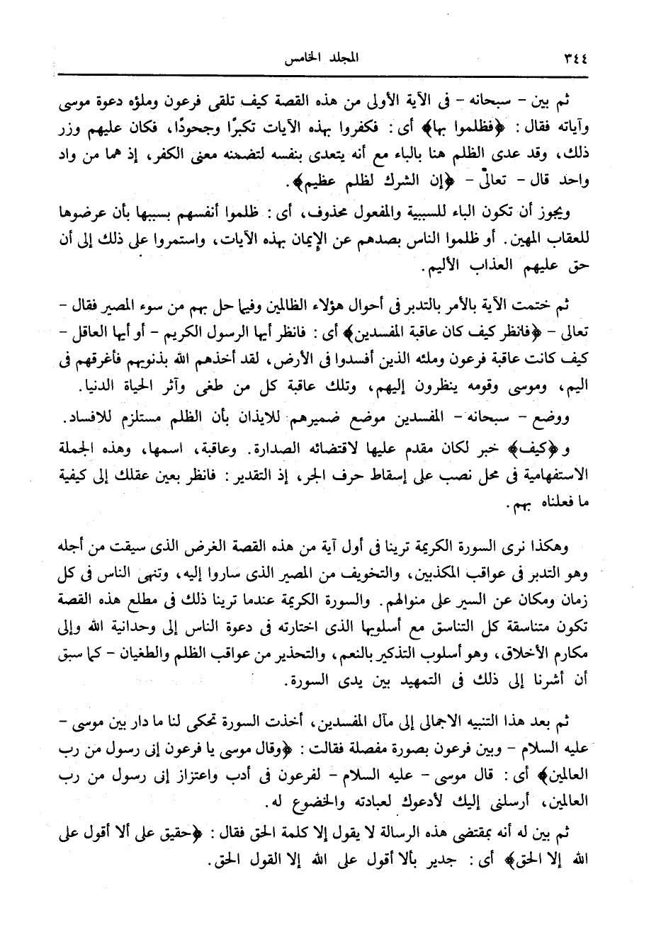 ثم بعد هذا التنبيه الإجمالي إلى مآل المفسدين، أخذت السورة تحكى لنا ما دار بين موسى- عليه السلام- وبين فرعون بصورة مفصلة فقالت: وَقالَ مُوسى يا فِرْعَوْنُ إِنِّي رَسُولٌ مِنْ رَبِّ الْعالَمِينَ أى: قال موسى- عليه السلام- لفرعون في أدب واعتزاز إنى رسول من رب العالمين، أرسلنى إليك لأدعوك لعبادته والخضوع له.