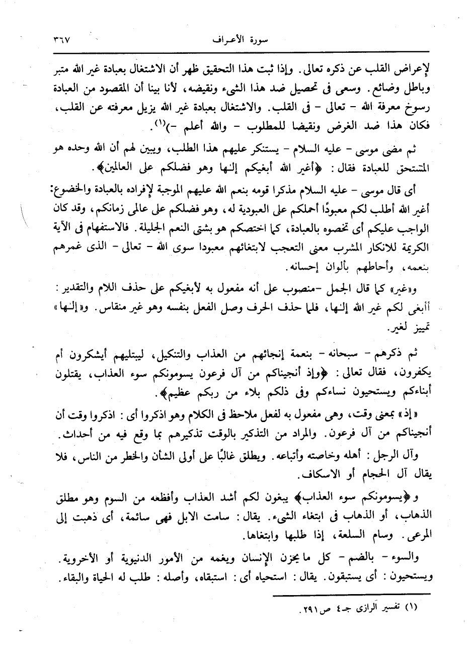 (1) تفسير الرازي ج 4 ص 291.