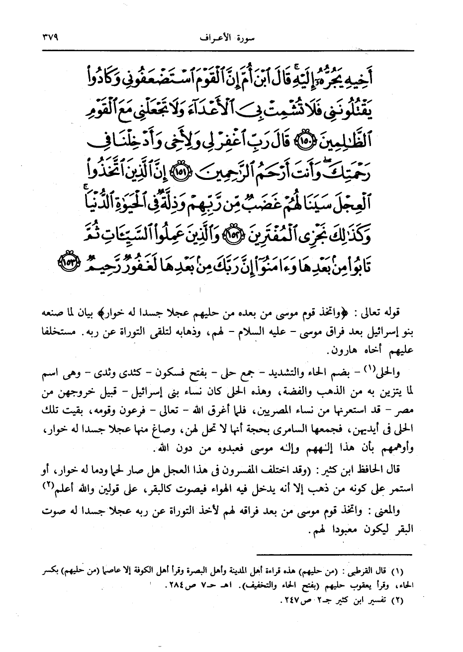 (1) قال القرطبي: (من حليهم) هذه قراءة أهل المدينة وأهل البصرة وقرأ أهل الكوفة إلا عاصما (من حليهم) بكسر الحاء، وقرأ يعقوب حليهم (بفتح الحاء والتخفيف) . اه ح 7 ص 284.