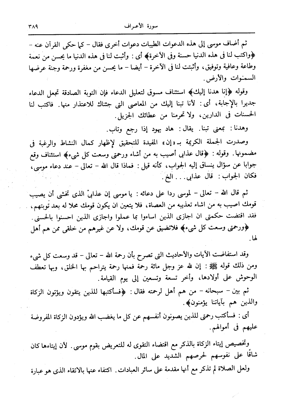 ثم أضاف موسى إلى هذه الدعوات الطيبات دعوات أخرى فقال- كما حكى القرآن عنه- وَاكْتُبْ لَنا فِي هذِهِ الدُّنْيا حَسَنَةً وَفِي الْآخِرَةِ أى: وأثبت لنا في هذه الدنيا ما يحسن من نعمة وطاعة وعافية وتوفيق، وأثبتت لنا في الآخرة- أيضا- ما يحسن من مغفرة ورحمة وجنة عرضها السموات والأرض.