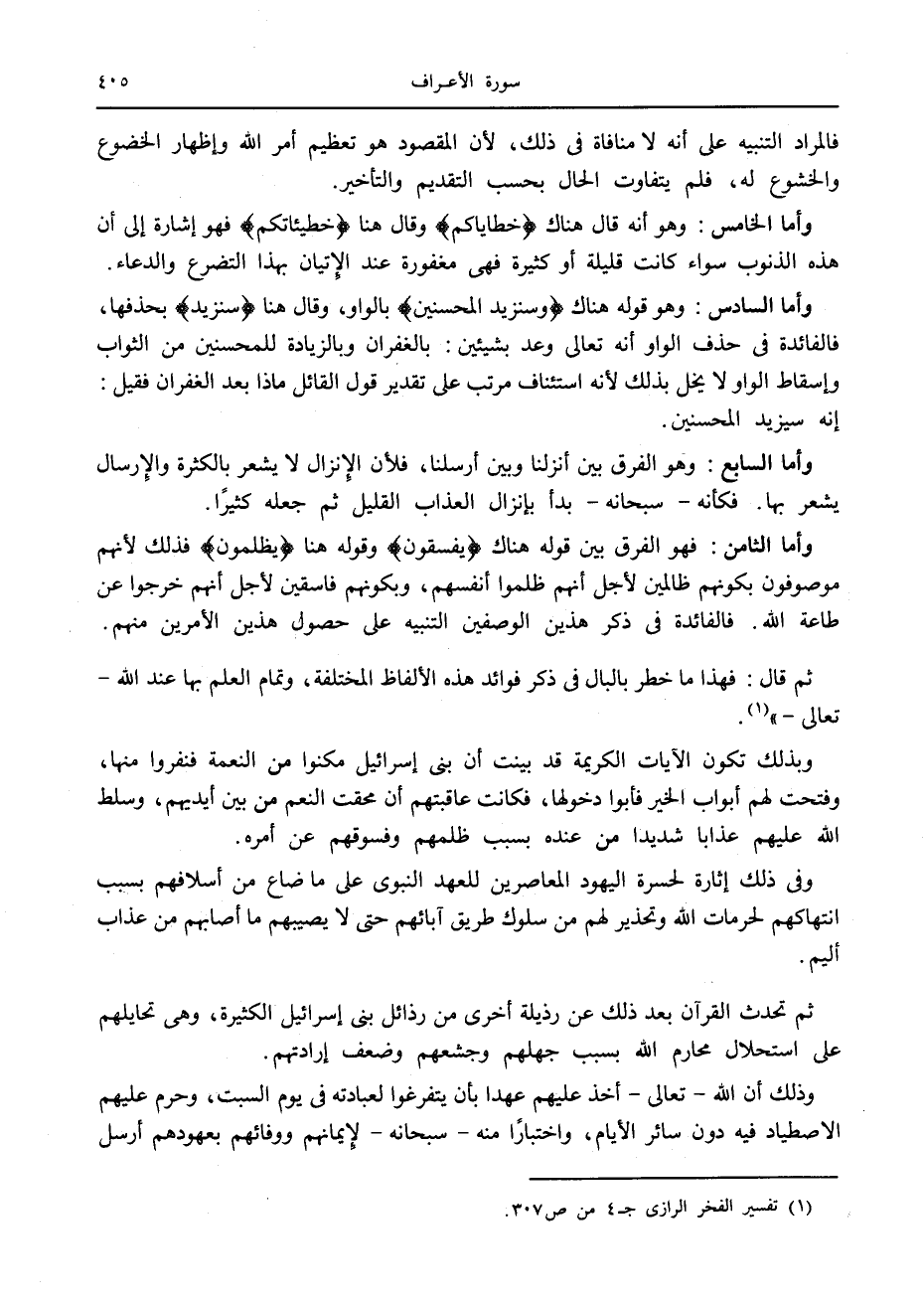 (1) تفسير الفخر الرازي ج 4 من ص 307.