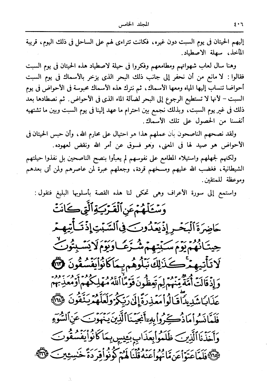 إليهم الحيتان في يوم السبت دون غيره، فكانت تتراءى لهم على الساحل في ذلك اليوم، قريبة المأخذ، سهلة الاصطياد.