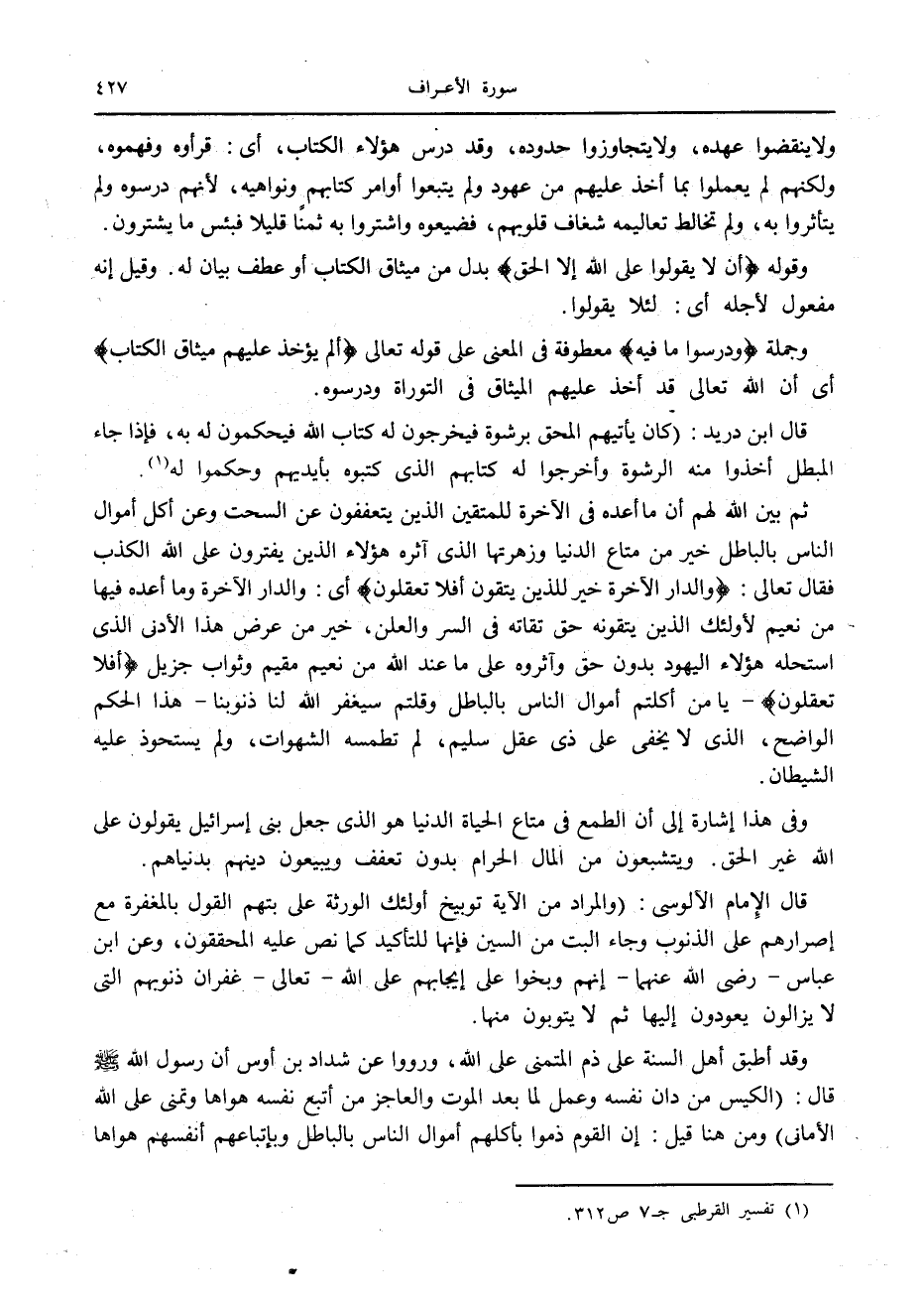 (1) تفسير القرطبي ج 7 ص 312.